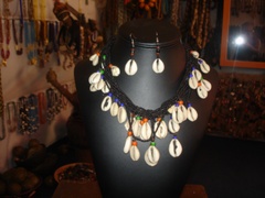 |  Collier C6-039Prix: 40,00 € Superbe collier de cauris en alignement de trois rangées alternées. Ce genre de collier est très représentatif dans toute l'afrique et reste intemporel, du fait de ce coquillage "emblématique"... Suite... |
