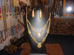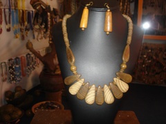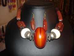 |  Collier C6-041Prix: 45,00 € Ce bijou de collier met à l'honneur l'ambre et notamment l'ambre du Kenya, si subtil avec sa couleur "miel boisée", avec de l'os de chameau, des perles de Bogolan...à couper le souffle... Suite... |