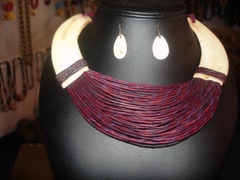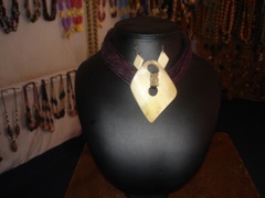 Collier C6-042Prix: 30,00 € Collier superbement ethnique, fait de tresses de cuir et d'os. A apprécier et essayer... Suite... |