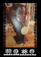 |  Collier C6-018Prix: 30,00 € Identique au précedent, il s'agit d'os de boeuf teinté au "hénné" local. Vendu avec sa paire de boucles d'oreille Longueur: 22 cm... Suite... |