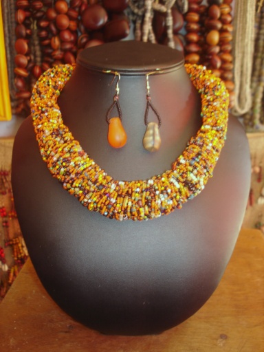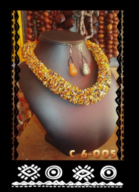 Collier C6-005 | Très beau mélange de perles multicolores à tendance orangé pour ce modèle de collier monté minutieusement sur des fils rigides donnant corps naturellement aux perles. Vendu avec sa paire de boucles d'oreille" Longeur: 24 cm