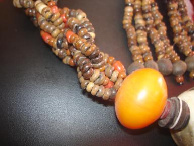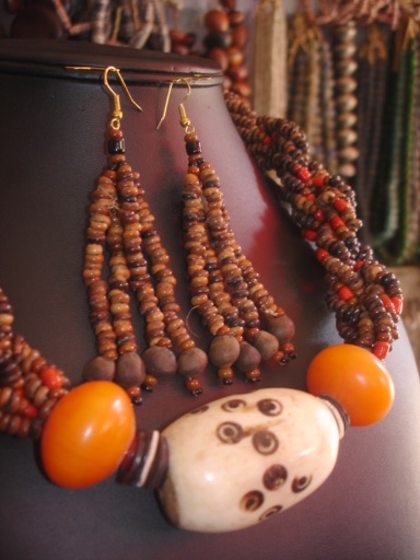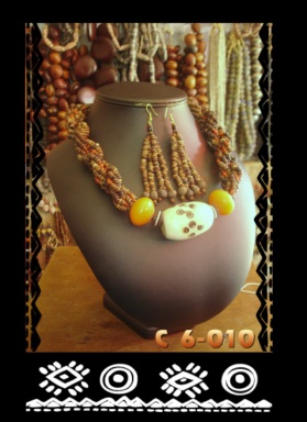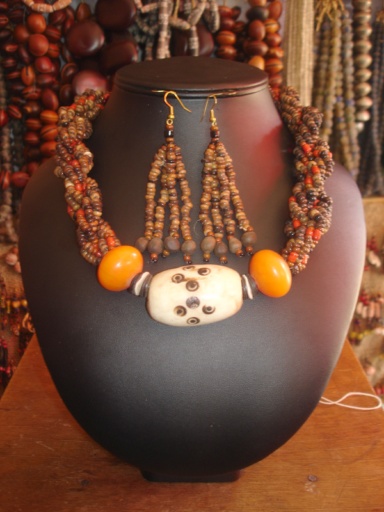 Bienvenue dans le monde des bijoux africains Collier C6-010 | Ce collier se définit comme une tresse de graines de cafés "sauvages" mélés à de l'ambre et de l'os de chameau. Vendu avec sa paire de boucles d'oreille. Longueur: 26 cm