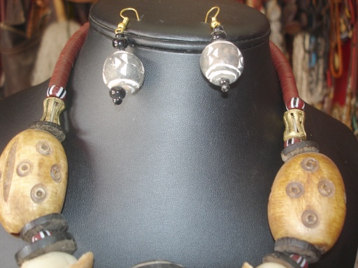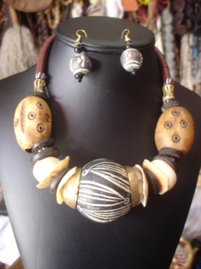 Collier C6-055 | Magnificience du collier africain ethnique. Il allie avec force les os de chameau bruts et vernis, du coquillage, des perles de bogolan, de la terre cuite du Mali et des koffyn sur son contour, des bronzes..... Il vous séduira par sa présence et son style unique!