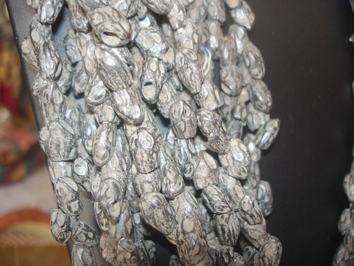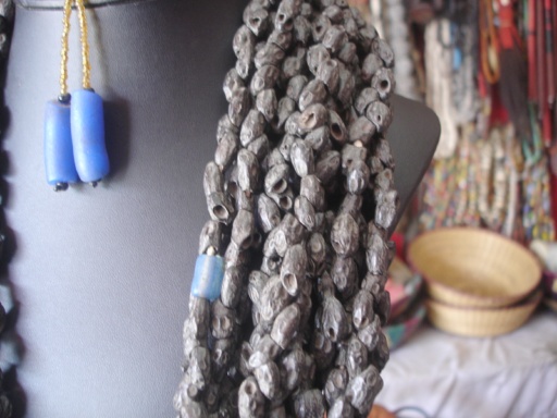 Collier C6-053 | Epais collier de perle de bois modifié et blanchi. Ce collier expérimental à la fois moderne et classique s'avère être léger et très maniable. A essayer!