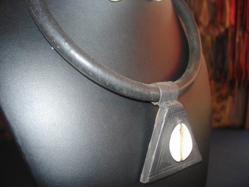 Collier C6-050 | Le cuir, les peaux sont des éléments de la culture africaine .Ils représentent l'essence d'une culture très traditionnelle et "brute".Brute comme ce collier de cuir noir réhaussé d'authentique cauris blancs, simplement "vrai" relatant une époque lointaine pas encore révolu .A savourer pleinement!!