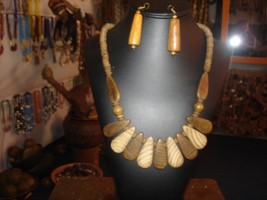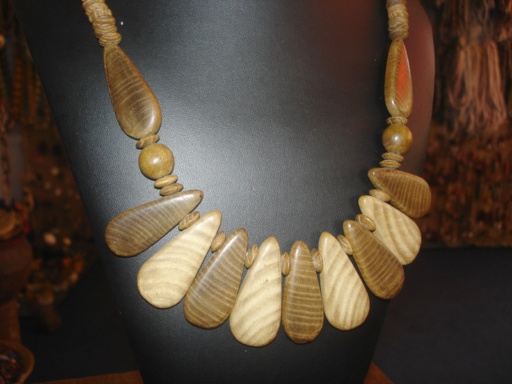 Bienvenue dans le monde des bijoux africains Collier C6-048 | Voici un collier de bois vernis avec de larges palettes organisé avec aisance et harmonie. Décolleté plongeant ne pas s'abstenir!!!!