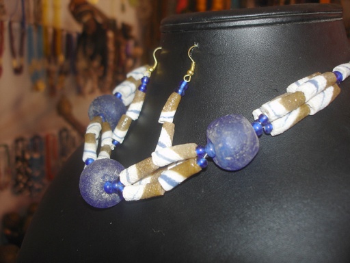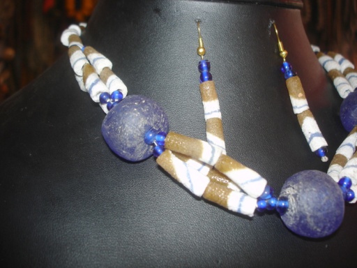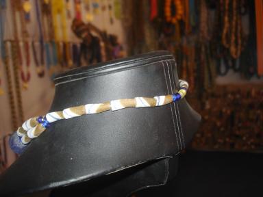 joli ras de cou en pâtes de verre boule et cylindrique, d'un bleu profond...Mignon à croquer!!!