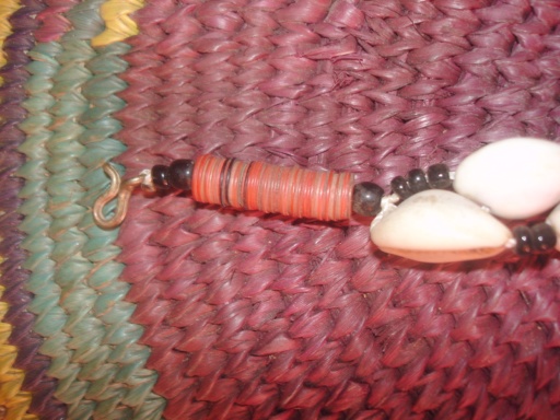 "Bracelet de cauris" en accord avec les colliers de cauris précédents, vendu avec sa paire de boucle d'oreille.